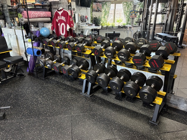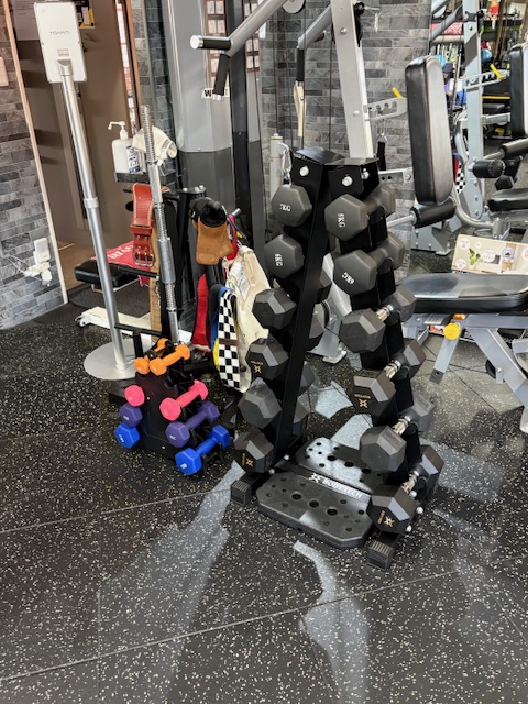 1㎏から10kgまでは1㎏刻み、12kgから34kgまでは2㎏刻みの固定ダンベルを揃えているので、幅広い重量のトレーニングが可能です。